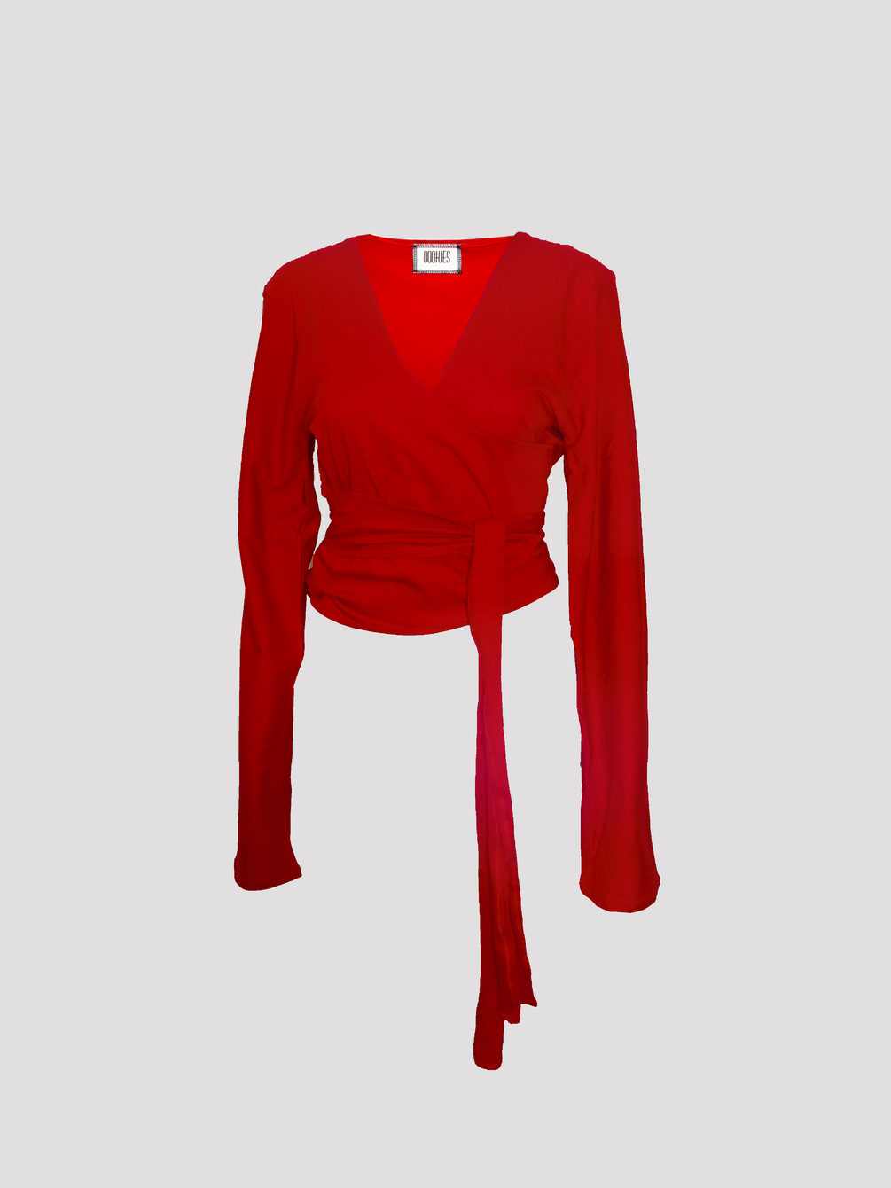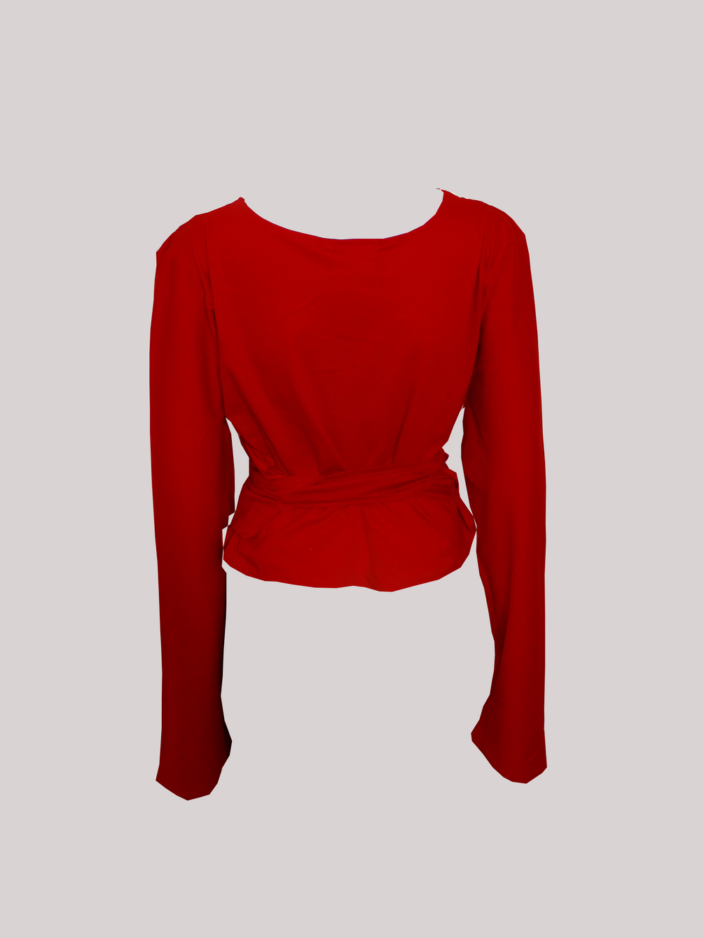 Red cotton T-shirt Knit jersey 100% cotton fabric long sleeve wrap top.